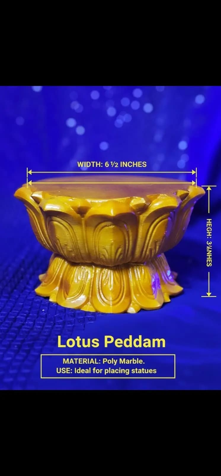 Elevate your sacred idols with the Lotus Peddam. This elegant double-lotus base is designed to provide a stable, beautiful foundation for statues in your home or office.